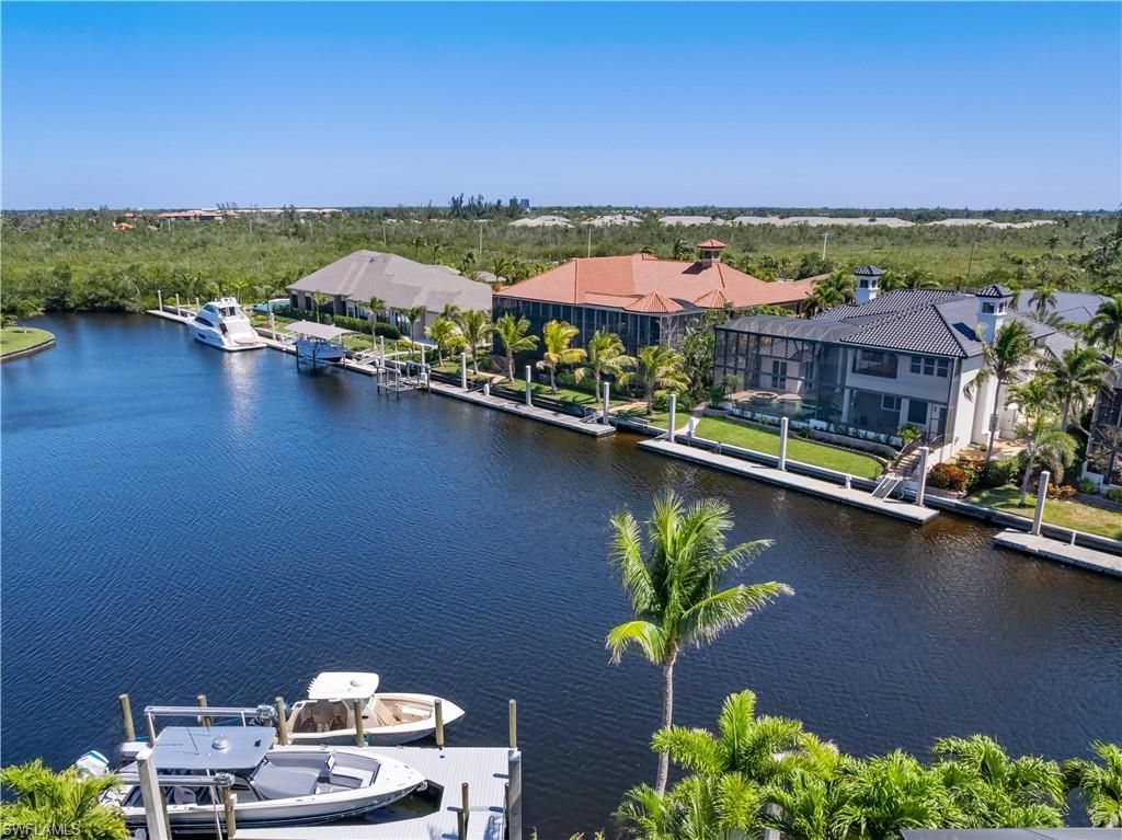 Experience unparalleled waterfront luxury in the prestigious deep-water boating community of Palmetto Point. This exquisite move-in ready residence has been completely reimagined, blending coastal contemporary elegance with upscale finishes and thoughtful design. Inside, an open floor plan with soaring ceilings and expansive windows fills the space with natural light, offering breathtaking views of intersecting canals and stunning western sunsets. The floating ceiling detail adds architectural interest, while light wood tones are beautifully balanced with deeper accents for a sophisticated aesthetic. The gourmet kitchen is a chef's dream, featuring Wolf appliances, sleek countertops, and custom cabinetry. A temperature-controlled wine room provides the perfect space for collectors. Each of the four ensuite bedrooms offers comfort and privacy, while a media/billiards room ensures entertainment for all. Step outside to a resort-style outdoor living space, complete with wood beamed ceilings, built-in BBQ, two spas, and a large pool-all designed for ultimate relaxation. A concrete floating dock accommodates a 95'+ yacht, making this an exceptional retreat for boating enthusiasts. Additional features include a new roof, A/C workshop, and a three-car garage. This is truly waterfront living at its finest. Don't miss your opportunity to own this extraordinary home in one of SWFL's most coveted boating communities!